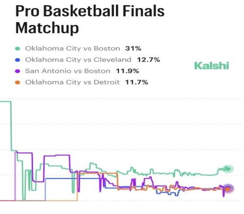 體育播報(bào)4月20日宣 預(yù)測(cè)平臺(tái)Kalshi曬出了本賽季總決賽對(duì)陣概率,具體如下: