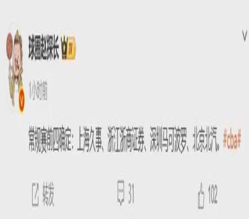 特別值得一提的是,已經(jīng)確定廣東隊(duì)無緣本賽季常規(guī)賽前四。前四球隊(duì)分別是上海隊(duì)、廣廈隊(duì)、深圳隊(duì)和北京隊(duì)。
