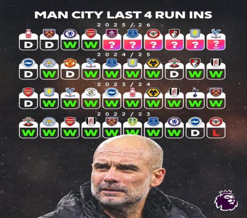 曼城和阿森納近4個(gè)賽季英超最后10輪對(duì)比:曼城34戰(zhàn)僅1負(fù)
