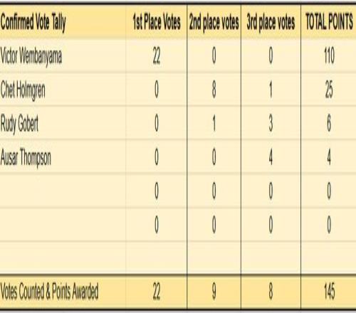年度最佳防守球員:霍姆格倫、奧薩爾-湯普森、文班亞馬