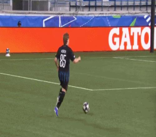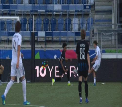 第64分鐘,科倫下底橫傳,延森搶點(diǎn)破門,布魯日U19 1-1皇馬U19