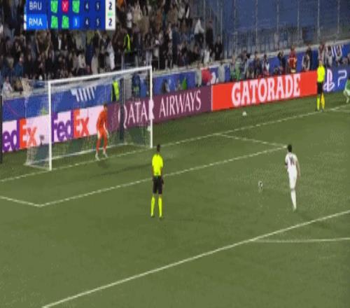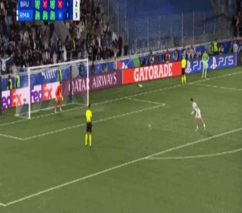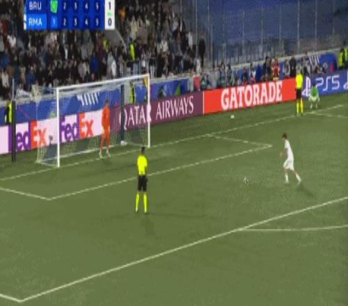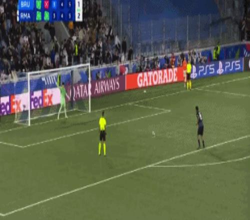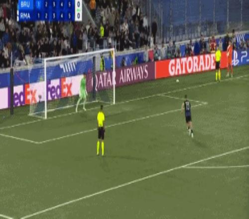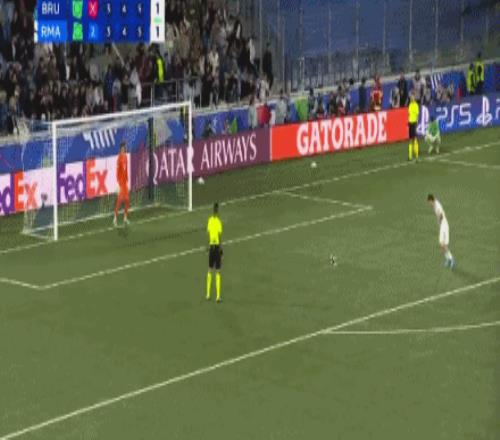 第一輪,戈馬埃雷罰進(jìn),納瓦斯庫埃斯罰進(jìn),布魯日1-1皇馬