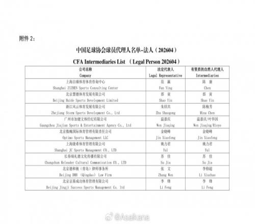 中國足協(xié)再次更新球員代理人名單 微博 2026-04-21 07:07:48 足球中國足球轉(zhuǎn)載 上一篇: 特種兵踢球!集美誠毅2名球員昨晚閩超首發(fā),今日足協(xié)杯又先發(fā)下一篇: 足協(xié)官方:廣州蜀地紅球員李振宇因?qū)嵤┍┝π袨椋Y?場