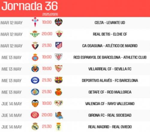 西甲 2025/2026賽季 第36輪 完整賽程(北京時間)
