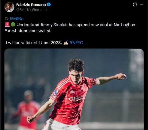 羅馬諾:諾丁漢森林已經(jīng)與19歲中場(chǎng)辛克萊續(xù)約至2028年