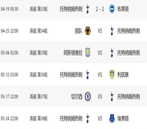 好在熱刺現(xiàn)在還有希望逆天改命,根據(jù)賽程安排,最后5輪比賽,熱刺的對手分別是狼隊、維拉、利茲聯(lián)、切爾西和埃弗頓。其中客場對陣維拉和切爾西,熱刺恐怕很難拿分,但是另外3場比賽,熱刺要是能正常發(fā)揮的話,有機會全取9分。特別是下一輪比賽,熱刺做客已經(jīng)提前降級的狼隊,如果都拿不到3分,熱刺就別指望保級了。