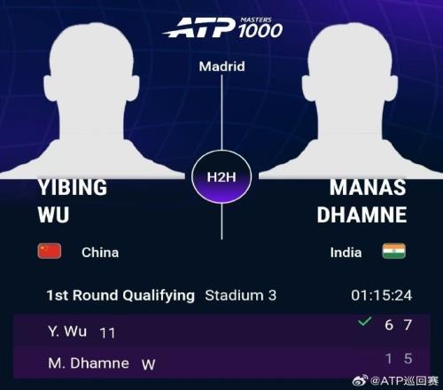 體育播報(bào)4月20日宣 馬德里大師賽資格賽首輪,吳易昺2-0晉級。