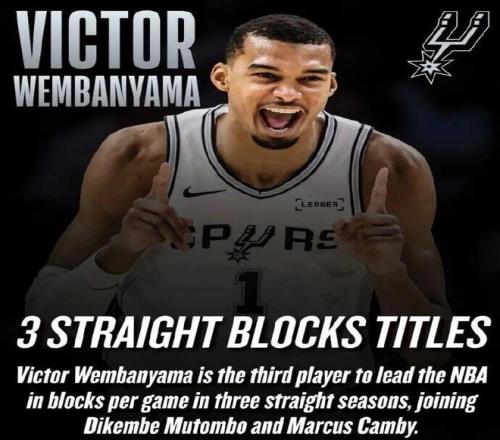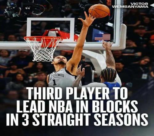 如無意外,文班會超越穆大叔的連續(xù)5年蓋帽王,最后成為聯(lián)盟歷史的蓋帽王。