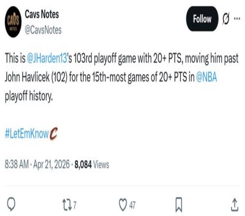 首組20誕生,哈登一戰(zhàn)迎3大里程碑!騎士3核轟83分觸發(fā)必勝定律