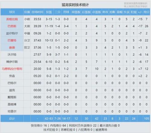 本賽季常規(guī)賽,猛龍三分命中率35.4%,僅排聯(lián)盟第21位,場均得分同樣是聯(lián)盟第21。說回今天這場比賽,英格拉姆和巴恩斯輪流打鐵,第一節(jié)這哥倆合計5中0得到0分3籃板2助攻。猛龍從一開場就被騎士壓制,從來沒有領(lǐng)先過。