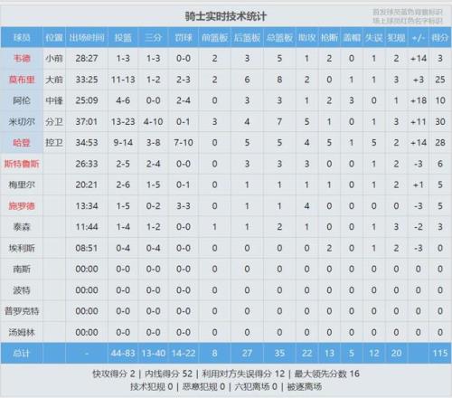 全場結(jié)束,騎士115-105戰(zhàn)勝猛龍,騎士2比0領(lǐng)先。米切爾30分7板5助、哈登28分5板4助5斷、莫布利25分8板2助。英格拉姆15中3,僅得7分4板3助5失誤,今年季后賽最讓人失望的球員!最后看看比賽數(shù)據(jù),說說你的心情: