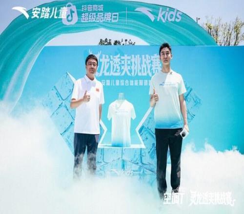 奧運(yùn)冠軍武大靖以"安踏兒童成長大使"的身份再次到場,這已是他見證空調(diào)T產(chǎn)品升級的第二年。發(fā)布儀式上,武大靖與安踏兒童品牌市場總監(jiān)初帥共同揮錘擊碎模擬冰塊裝置,搭載A-ICETECH冰感科技的安踏兒童空調(diào)T正式亮相。