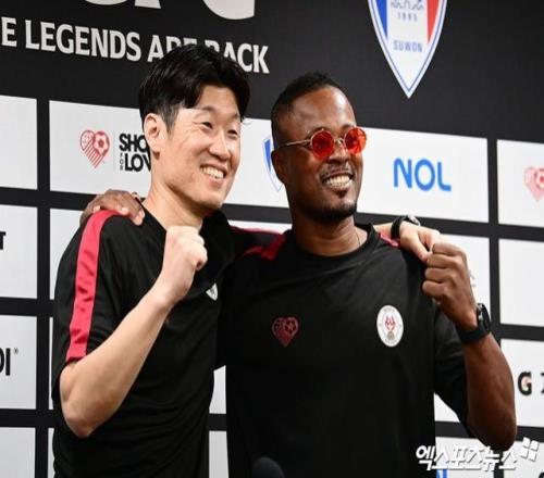 在韓國(guó)參加友誼賽活動(dòng)中,韓國(guó)前國(guó)腳樸智星與前隊(duì)友埃弗拉一同出席了新聞發(fā)布會(huì)。