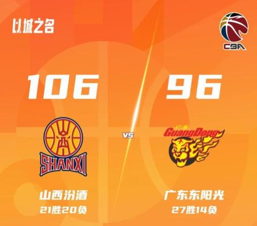 參考資料:CBA聯(lián)盟 山西汾酒106-96廣東東陽光