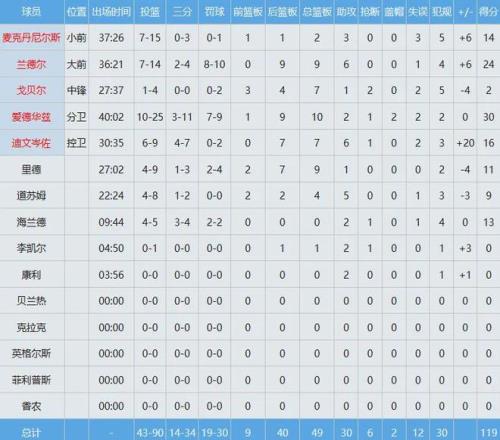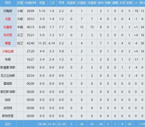 本場掘金兩大核心全部失準,約基奇投籃20中8收獲24分15板8助準三雙;穆雷投籃25中11貢獻30分7板7助。