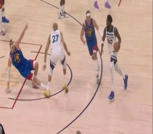 約基奇一個體重128kg的大中鋒,與戈貝爾輕輕對抗后就摔倒在地,后者被吹進攻犯規(guī)。
