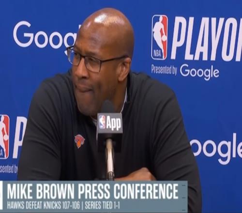 體育播報(bào)4月21日宣 NBA季后賽G2,尼克斯主場106-107遭老鷹逆轉(zhuǎn)。賽后主帥邁克·布朗接受了采訪,以下為采訪全文。
