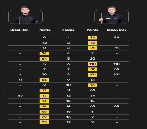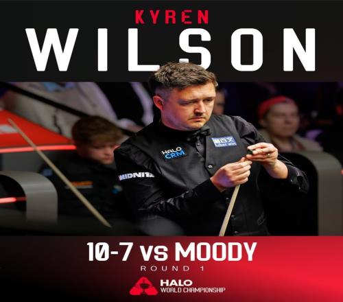 第一階段戰(zhàn)罷斯坦·穆迪6-3領(lǐng)先,第二階段上半場穆迪再拿一局7-3領(lǐng)先,但隨后凱倫·威爾遜送出7連鞭,10-7戰(zhàn)勝穆迪晉級16強。