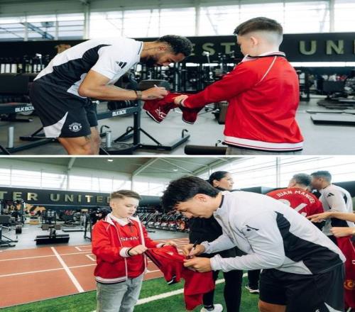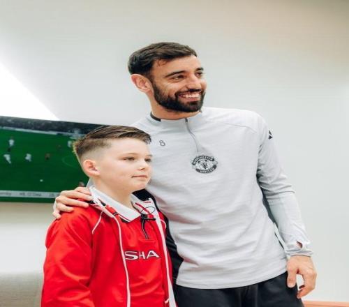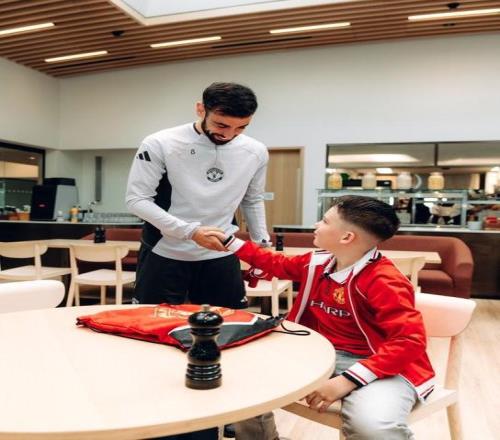 羅文-斯臺(tái)普頓還給B費(fèi)和他的家人帶來了禮物,隨后,獲贈(zèng)一件印有自己名字的主場球衣,還有一件球衣將由曼聯(lián)一線隊(duì)隊(duì)員簽名,還與自己最喜歡的曼聯(lián)球星合影留念