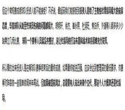 對于廣東男籃的成績,“海jun的藍(lán)”表示投資人肯定是有要求的,目前可以說是給了主教練杜鋒指導(dǎo)最大的寬容態(tài)度。投資人是在等球隊賽季結(jié)束后的最終成績,如果最終能進(jìn)四強,應(yīng)該會達(dá)到管理層的最低要求,休賽季對陣容做一些簡單微調(diào)來年再戰(zhàn)。但如果被提前淘汰,總需要有人站出來做個交代,那這個人大概率還是杜指導(dǎo)?!昂un的藍(lán)”雖然說的非常隱晦,但意思卻非常明顯,那就是廣東男籃如果能夠在季后賽中打進(jìn)四強還好說,如果打不進(jìn)四強的話,杜鋒就有下課的可能了。
