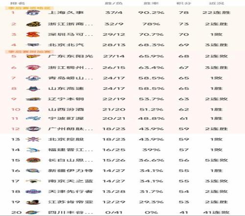 北京時間4月21日,CBA常規(guī)賽已經(jīng)結(jié)束了第41輪的較量,我們看看最新的積分榜變動!晉級季后賽的隊伍已經(jīng)產(chǎn)生了11個席位,其中四強的名單已經(jīng)出爐,分別是上海男籃,廣廈男籃,深圳男籃和北京男籃!上海和廣廈已經(jīng)鎖定了前二,深圳和北京的名次需要到最后一輪才能百分百確定!