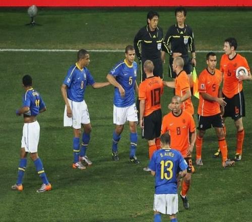 下半場(chǎng)開(kāi)始,風(fēng)云突變。荷蘭隊(duì)一腳傳中,本來(lái)毫無(wú)威脅,梅洛卻在出擊的門將塞薩爾面前畫蛇添足地跳了一下,干擾了隊(duì)友,皮球鬼使神差地蹭著他的頭頂飛進(jìn)了自家大門——烏龍球!巴西被追平比分。