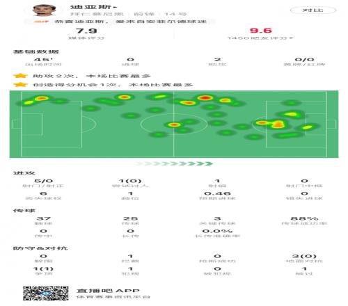 直播吧X小紅書德甲第30輪最佳:迪亞斯2助攻,本賽季第5次當(dāng)選!