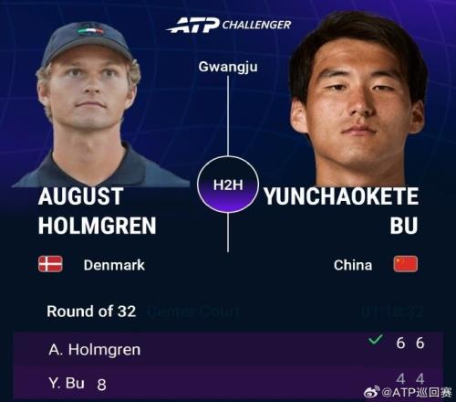 布云朝克特兩盤不敵霍姆格倫,止步ATP光州挑戰(zhàn)賽首輪