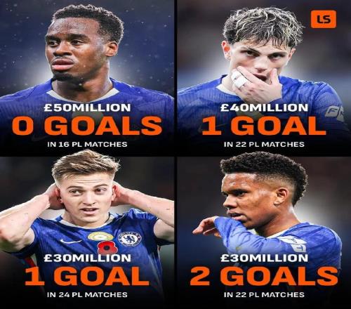 切爾西去年夏窗四前鋒到隊(duì),總轉(zhuǎn)會費(fèi)1.5億但在英超一共只進(jìn)4球