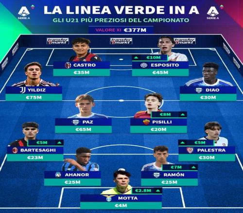 德轉(zhuǎn)列意甲U21最貴陣容: