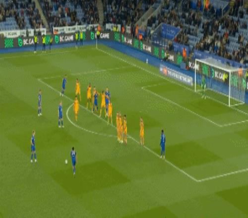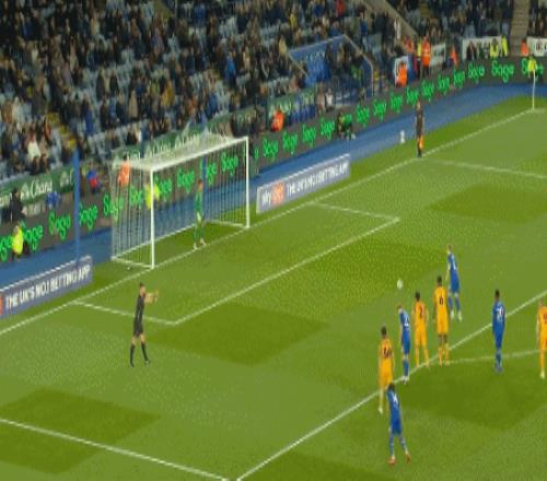 第36分鐘,萊斯特城前場(chǎng)任意球,穆卡薩射門打高