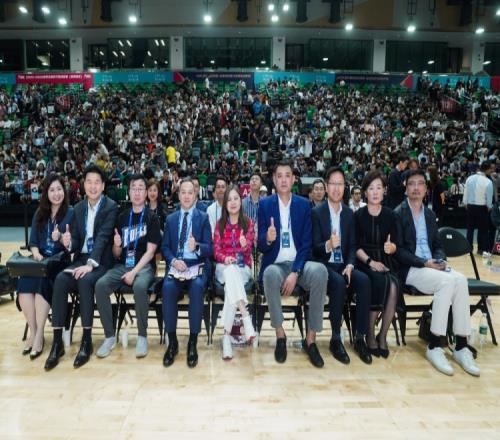 在頒獎儀式的最后環(huán)節(jié),全場燈光聚焦,現(xiàn)場氛圍逐漸推向高潮。隨著萬眾矚目的時刻到來,中國籃球名人堂入堂人物鞏曉彬與中國香港特別行政區(qū)政府文化體育及旅游局局長羅淑佩女士,JP共同登場,將象征NBL聯(lián)賽最高榮譽(yù)的總冠軍獎杯頒發(fā)給香港金牛。掌聲與歡呼聲此起彼伏,見證球隊在主場加冕的榮耀時刻。