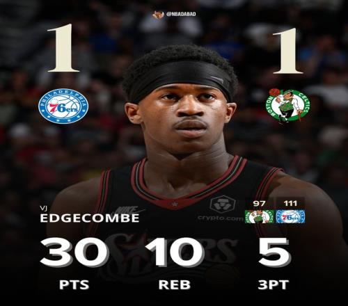 北京時(shí)間4月22日,NBA季后賽,費(fèi)城76人客場111-97大勝波士頓凱爾特人,大比分1-1平。這場比賽綠凱一度領(lǐng)先13分被逆轉(zhuǎn),尤其是第二節(jié)他們被埃奇庫姆的三分球給打懵了,單節(jié)新秀埃奇庫姆拿到16分,之后費(fèi)城一直壓制綠凱完成以下克上。