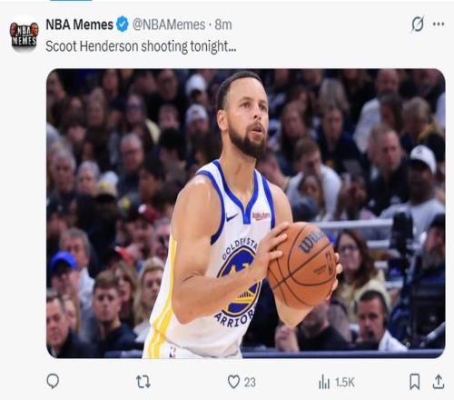 美媒NBA Memes寫(xiě)道:這個(gè)夜晚的亨德森像是斯蒂芬-庫(kù)里附體一般。