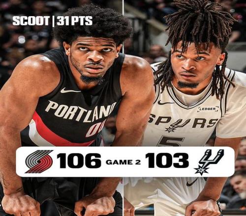 今日季后賽,西部首輪G2,馬刺主場(chǎng)103-106輸給開拓者,系列賽大比分被追成1-1。