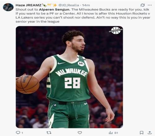 火蜜:感謝申京的復(fù)出,密爾沃基雄鹿已經(jīng)準(zhǔn)備好迎接你了。(暗示用申京去換揚(yáng)尼斯)