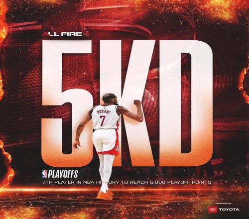 杜蘭特加冕季后賽5000分先生,歷史第七&現(xiàn)役第二人