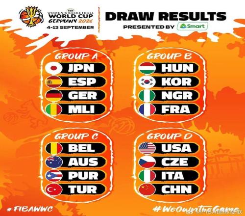 北京時間今日凌晨,2026女籃世界杯抽簽結果出爐,具體分組如下:
