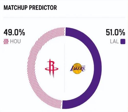 賽前,美媒ESPN對(duì)本場(chǎng)比賽進(jìn)行了勝率預(yù)測(cè),湖人勝率升至51.0% ,火箭隊(duì)勝率則僅有49.0% ,一場(chǎng)55開的硬仗。