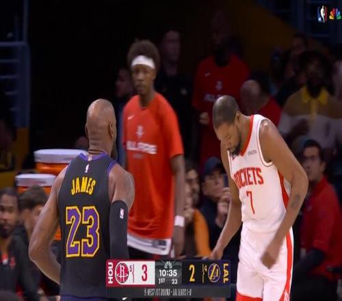 這場(chǎng)比賽是詹姆斯2018年總決賽后首次在季后賽遇上杜蘭特,開(kāi)場(chǎng)勒布朗就搶斷了KD一條龍暴扣得手,隨后在節(jié)末詹姆斯反擊又制造杜蘭特犯規(guī),首節(jié)杜蘭特已經(jīng)2次犯規(guī),詹姆斯首節(jié)3中2拿到6分3籃板1助攻。