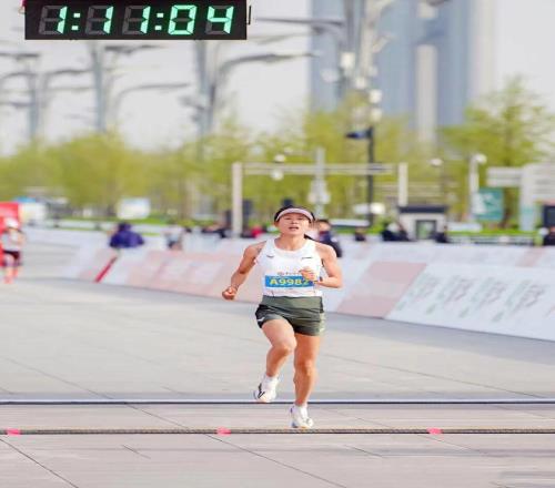 3月15日的仁壽。計時器定格在1:10:22。西南大學(xué)研究生在讀三年級的劉君慧沖過終點線時,異常激動。她的身后是在今年東京馬拉松PB到2:26:35的全馬高手路穎。