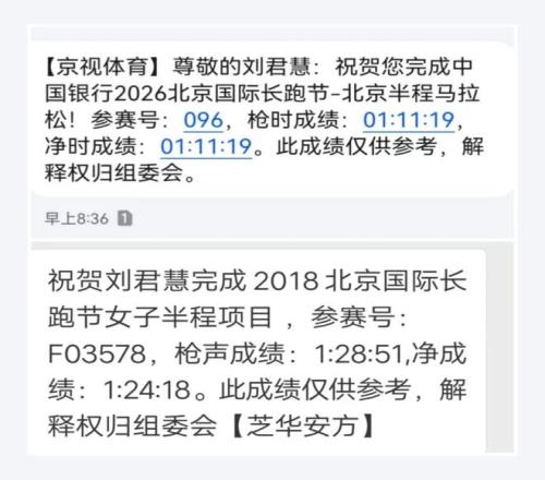 不過,劉君慧對大眾半馬一姐的稱謂感覺平淡,她覺得自己雖沒注冊過專業(yè)隊,但畢竟從高中時就開始練1500米和3000米。2018年,在清華附中上高中的她還試水過北京半馬。那一次她記憶深刻,由于起床晚,當(dāng)?shù)匠霭l(fā)點時,已接近遲到的邊緣。那一場,她跑出1:24:18。
