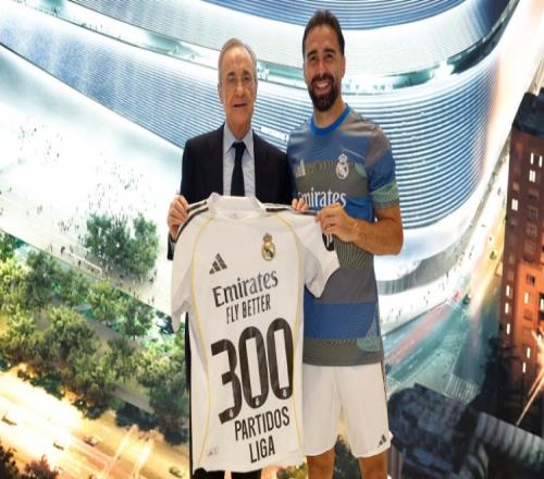 賽后,皇馬主席弗洛倫蒂諾向卡瓦哈爾贈(zèng)送了300場紀(jì)念球衣。