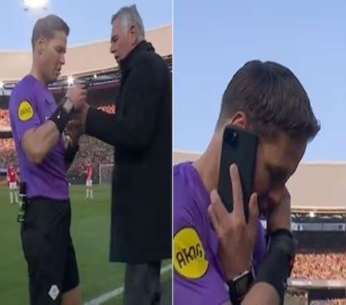 體育播報(bào)4月22日宣 在本賽季的荷蘭杯決賽中,主裁判突然暫停比賽到場(chǎng)邊接電話,這罕見的一幕讓人很驚訝。