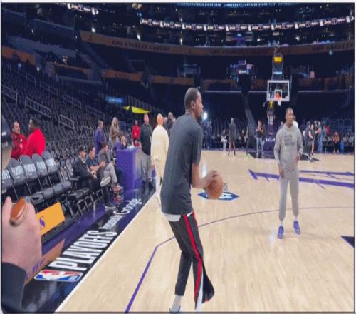 賽前訓練時,杜蘭特接球投籃、運球后的投籃都很絲滑。
