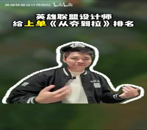體育播報(bào)4月22日宣 拳頭官方發(fā)布視頻,設(shè)計(jì)師給上單從夯到拉排名,配文:蓋倫、劍魔最夯。