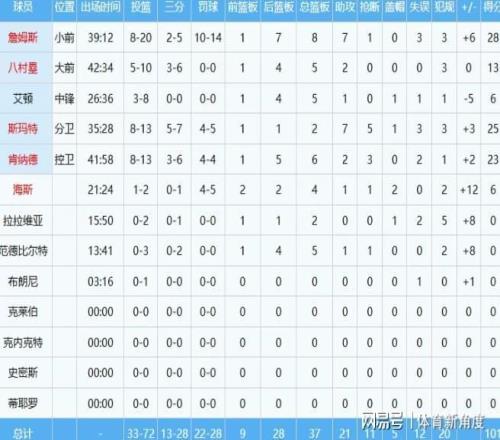 湖人隊(duì)此役展現(xiàn)出了驚人的團(tuán)隊(duì)力量,新組合的“三巨頭”——詹姆斯、斯瑪特與肯納德,合力砍下76分、16個(gè)籃板、16次助攻以及驚人的9次搶斷,他們的默契配合與高效表現(xiàn),成為了湖人隊(duì)取勝的關(guān)鍵。