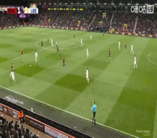 第43分鐘,伯恩茅斯對(duì)利茲聯(lián)形成圍攻,特呂費(fèi)爾傳中被擋出,隨后克魯皮再傳,克里斯蒂的小角度射門(mén)被達(dá)爾洛擋出。↓