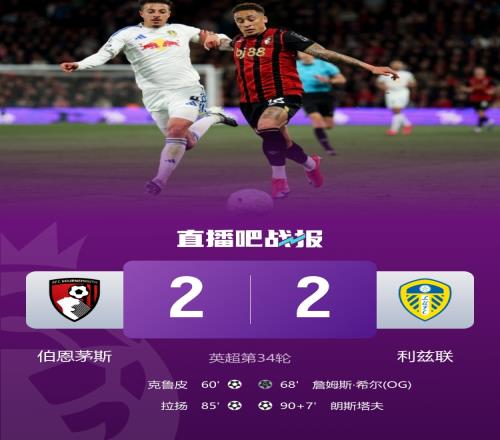 全場(chǎng)比賽結(jié)束,最終伯恩茅斯2-2利茲聯(lián)。