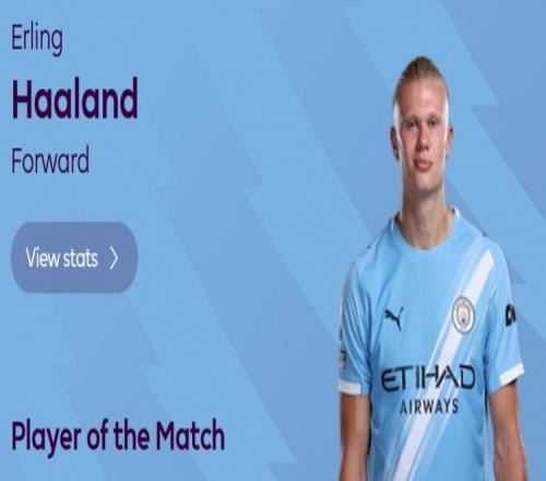 本場(chǎng)比賽哈蘭德首發(fā)出場(chǎng),打進(jìn)全場(chǎng)唯一進(jìn)球,賽后他也當(dāng)選英超官方球迷票選全場(chǎng)最佳球員。